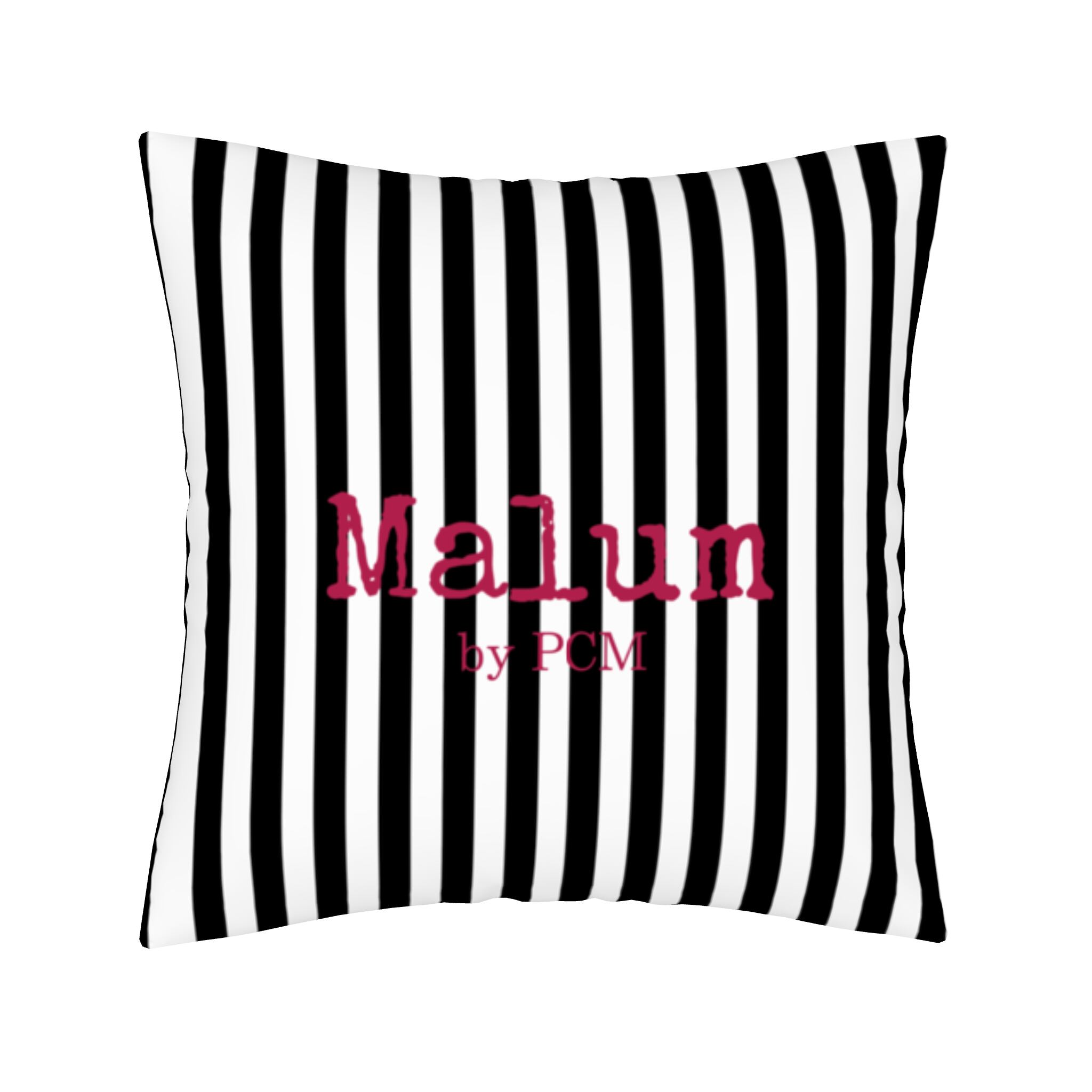 表面にシジル、裏面にMalumのロゴをあしらったストライプ柄の記念クッションカバー。
